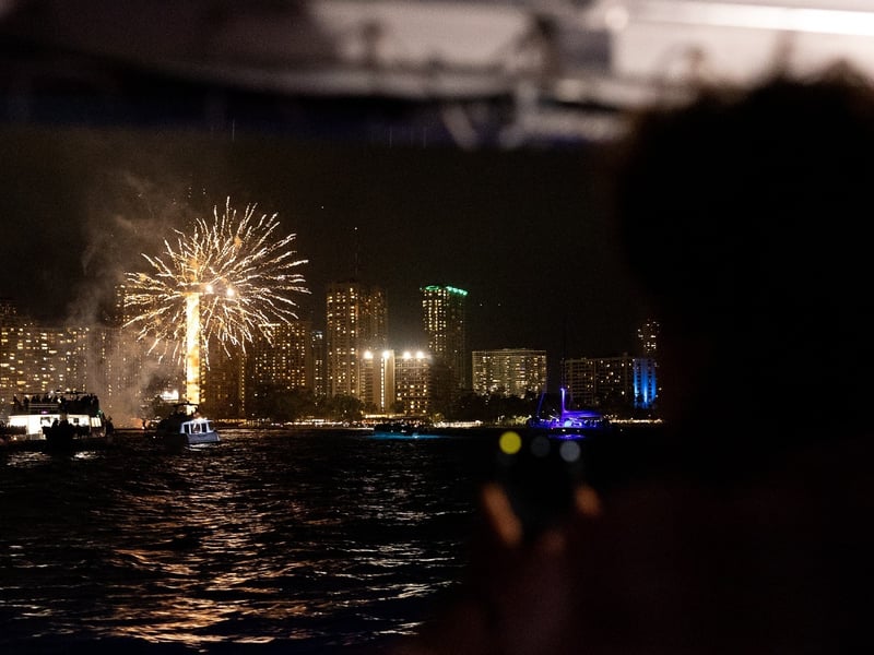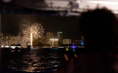 Dance to a live DJ while watching Waikiki's fireworks from a catamaran
