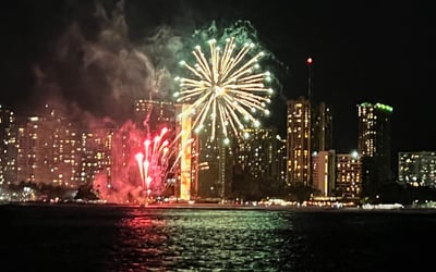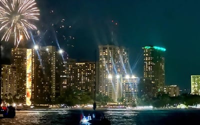 Sail off Waikiki for Friday fireworks with skyline views and drinks available to purchase