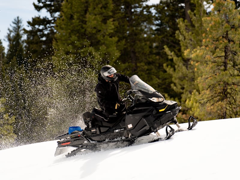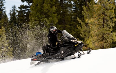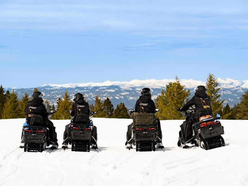 Ride Idaho's serene backcountry on a full-day guided snowmobile trip. Explore rivers, forests, and powder fields with gear provided and support for all skill levels.