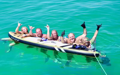 Spend a full day on a tiki-themed boat in Destin with a captain and first mate guiding the fun. Cruise to Crab Island, swim, and soak up coastal views.