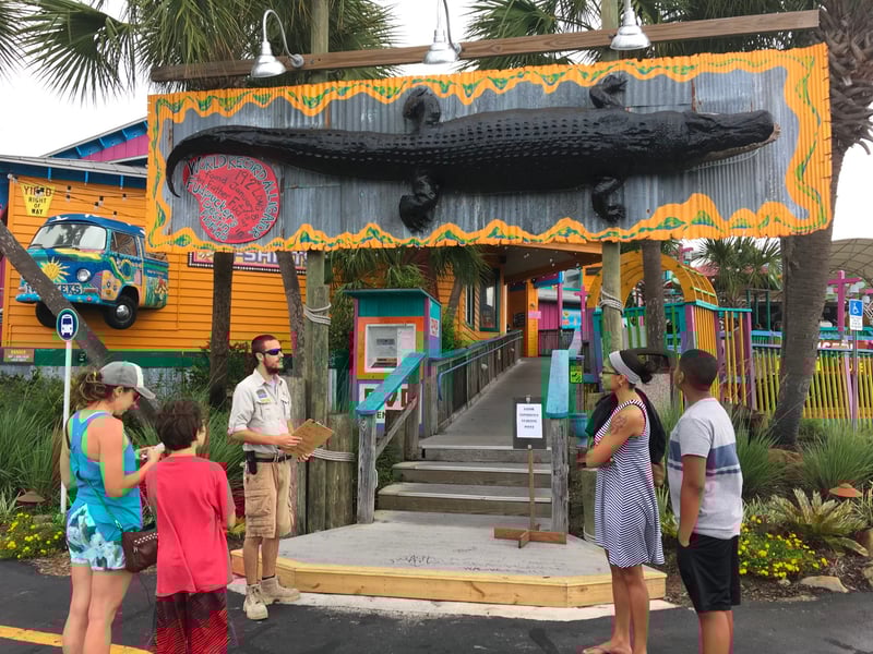 Meet us at the bottom of the ramp to Fudpucker's, underneath the billboard with the giant alligator!
