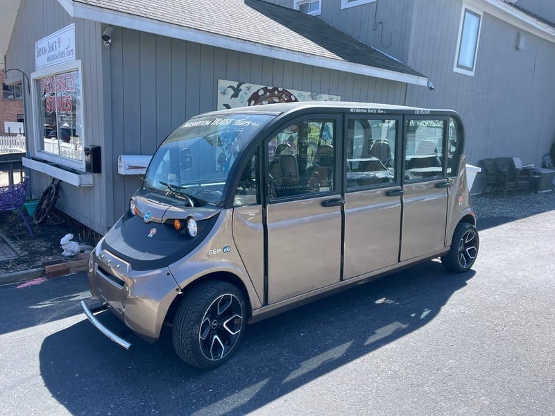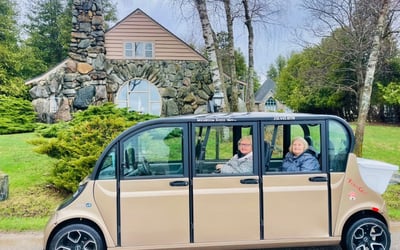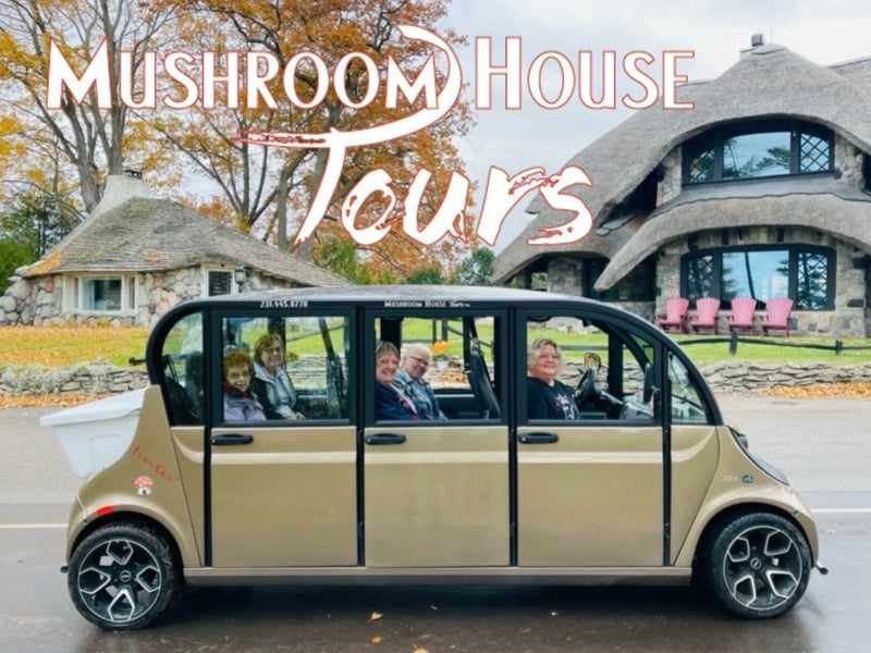 Ride a GEM cart through Charlevoix to see all 28 Earl Young Mushroom Houses. Stay comfortable in enclosed carts with heat in inclement weather.
