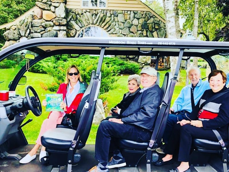 Visit all 28 Earl Young Mushroom Houses with heated, enclosed carts