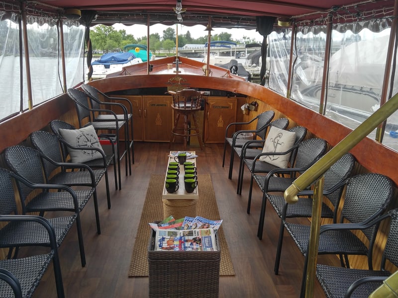 Book a fully enclosed replica launch for a customizable private cruise for your event