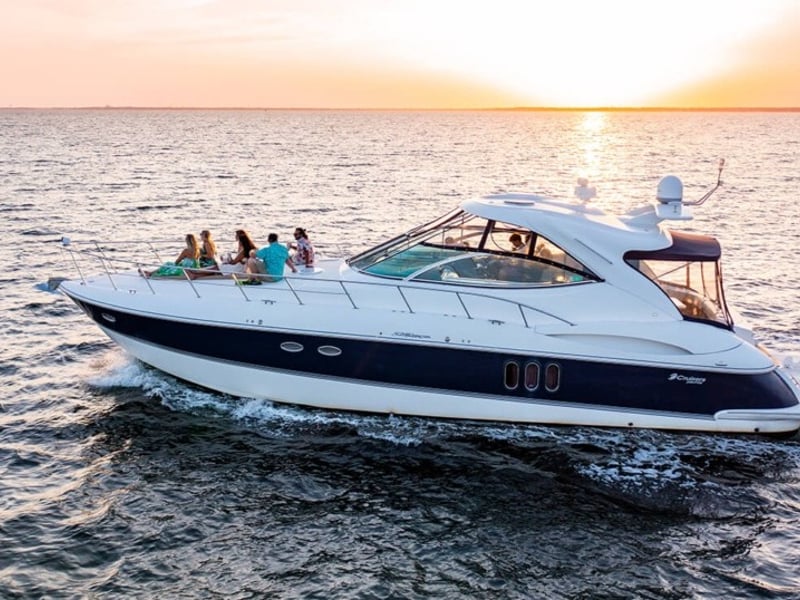 Step aboard the G.G. Marie, a 52ft cruiser with two bedrooms and two bathrooms, ideal for up to 12 guests. Cruise to Crab Island or relax in the fully enclosed heated cabin while taking in Emerald Coast views.