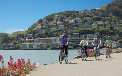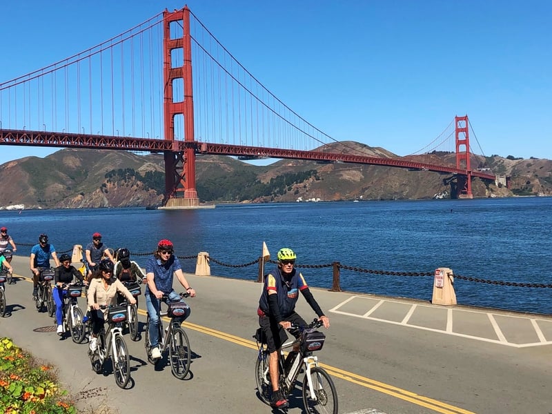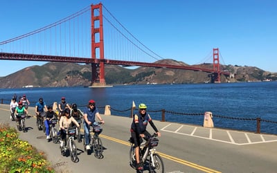 Pedal across the Golden Gate Bridge, explore Sausalito, and visit Muir Woods in one guided day