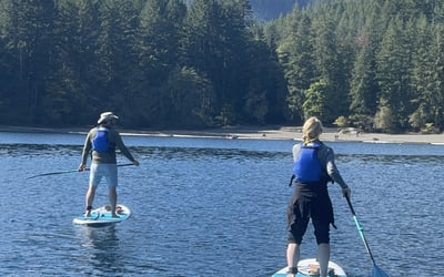 Josh has built something special at Lake Cowichan, and it shows in every detail. His high-quality RED paddleboards are impeccably maintained, and he stocks all the little extras that matter: PFDs in every size, waterproof phone cases, sunglass straps. Reviewers consistently praise his warm professionalism and genuine care for customers, from first-timers to experienced paddlers. He's particularly great with families and kids, making everyone feel safe and confident on the water. The standout experience here is clearly the night glow paddle. These evening tours feature illuminated boards that let you see underwater, chill music, starry skies, and an overall magical vibe that families call their summer highlight. There's even a large "Mothership" board equipped with chairs for those who want to ride along. Gordon Bay's sheltered location provides beautiful, calm conditions perfect for exploring. The consistent five-star feedback reflects Josh's attention to safety, his knowledge of the area, and those thoughtful touches that turn a simple paddle into an unforgettable memory.