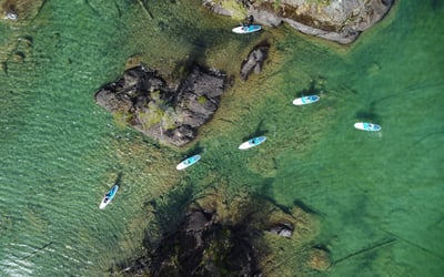 Launch from the shores of Gordon Bay Provincial Park for a guided paddle around the Gordon Bay island group. Learn SUP basics, refine your technique, and enjoy clear, emerald waters with the chance to take a refreshing swim.