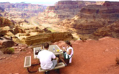 Experience six Grand Canyon West highlights in one full-day tour, capped by a helicopter flight to the canyon floor. Explore Joshua Tree Forest, scenic viewpoints, and a Hoover Dam photo stop with lunch, snacks, and water included.