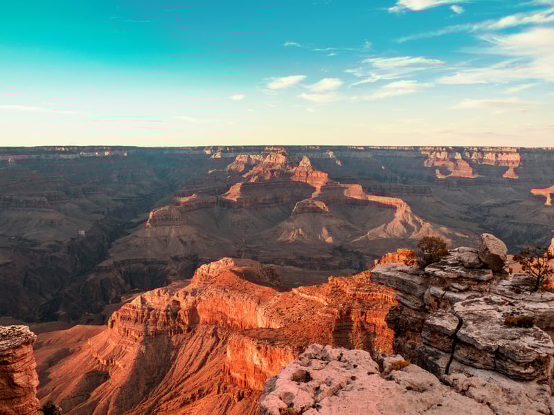 Ride a comfortable motorcoach from Las Vegas to the South Rim of Grand Canyon National Park. Enjoy a guided tour with three scenic viewpoints, plus a lunch stop at the National Geographic Visitor's Center with options like pizza, rice bowls, sandwiches, or a hot dog.