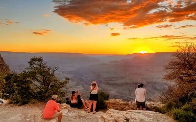 Experience a guided South Rim sunset tour with a seasoned local. Travel in a comfortable van, take in multiple viewpoints, and enjoy dinner after sunset.