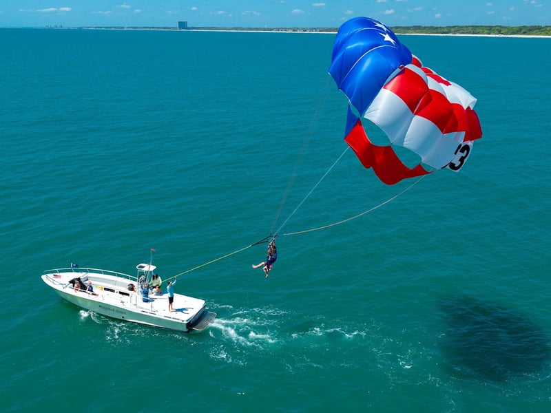 Soar up to 400 feet with a 10–12 minute parasail flight and ocean views