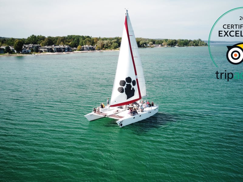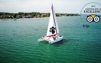 Set sail on Grand Traverse Bay during the liveliest winds on a 2-hour afternoon cruise. Depart from West Bay Beach, sip from the onboard "dive bar", relax in the nets, and take in Old Mission and Leelanau Peninsula views.