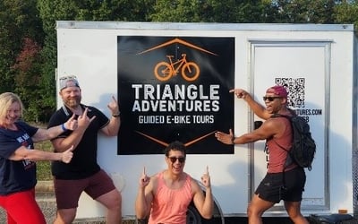 Triangle Adventures delivers consistently excellent e-bike tours around the Raleigh area, with guides Dave and Marlo earning praise in nearly every review. First-time e-bikers repeatedly mention feeling comfortable and well-prepared after thorough instructions, and the bikes themselves are described as easy to ride and well-maintained. The tours blend local history with entertainment, particularly the popular ghost/spooky tour and the Clayton Burgers, Brew & History experience. Reviewers appreciate the thoughtful details like provided gloves, water, and helmets, plus food and drinks that arrive ready when the group does. What makes these tours special is the guide duo's ability to balance education with fun. Dave's humor and Marlo's historical knowledge create an engaging atmosphere that keeps groups entertained throughout 3-hour rides covering 14+ miles. The routes showcase beautiful scenery along greenways and through town, with well-timed stops at cemeteries, trolls at Dix Park, and other points of interest. Groups of friends, teams, and special occasion celebrations all report having memorable experiences, with many already planning return visits for different themed tours.