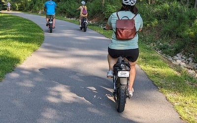 Ages 15+. Ride follows a paved greenway on pedal-assist e-bikes.