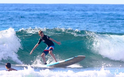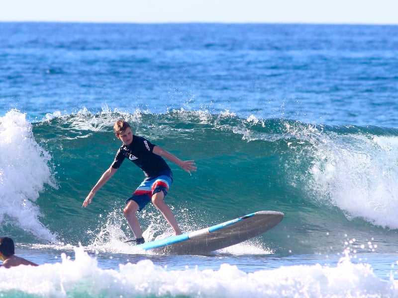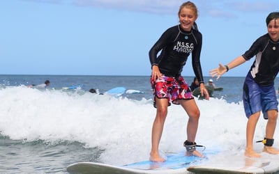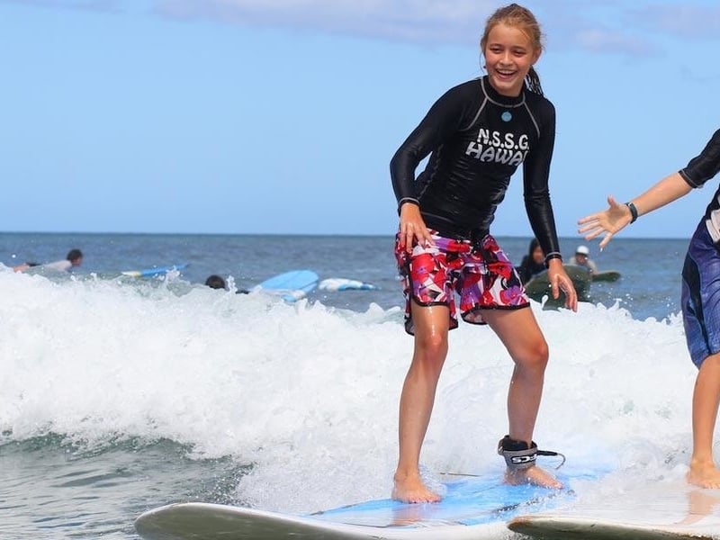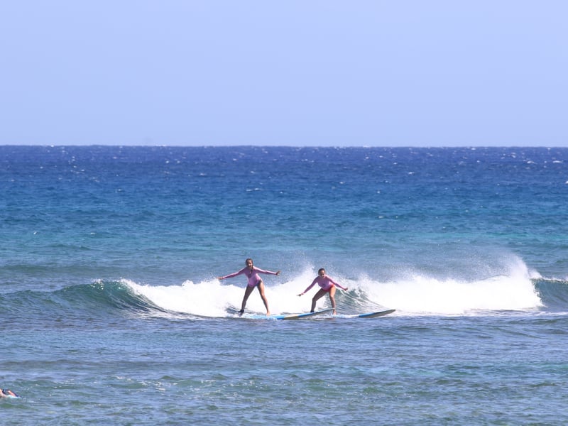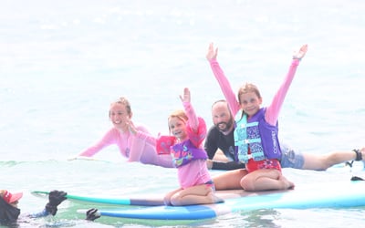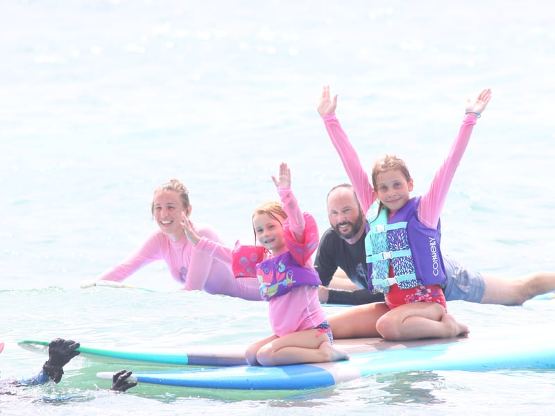 Learn to surf in a supportive group with pro surfers and lifeguard instructors