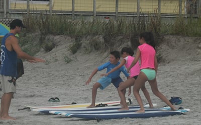 Each year, the kids and I schedule a bunch of surf lessons with Kokopelli Surf Camp. We live up North, so it's great getting a dose of "surfing education" every summer. We are so grateful to the instructors at Kokopelli, who each have their own style, but are invariably friendly, patient, fun, and enthusiastic, especially when families and friends get together to learn. Thank you Brandon, Logan, and Josh for all the great times and great instruction! We'll be coming back to see you!