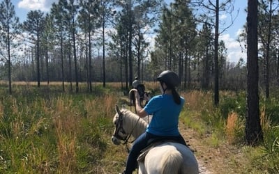 Enjoy a scenic guided trail ride in Lake Louisa State Park, ideal for beginners ages 8+.
