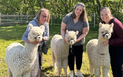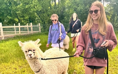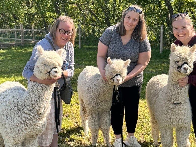 Stroll alongside friendly alpacas on a scenic Wisconsin farm and learn about these charming animals.