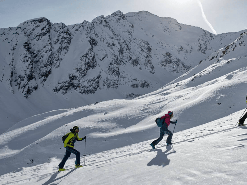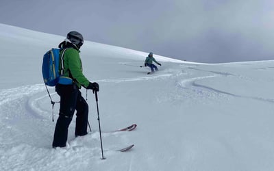 Participants should be comfortable on steep blue to black resort terrain and traveling off-trail. Maximum 5:1 guest-to-guide ratio. Tours typically run December through April; most kids 12+ can participate depending on ability.