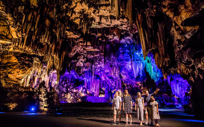 Experience a one-hour guided cave tour with an underground laser light show
