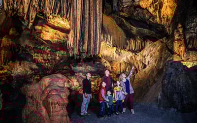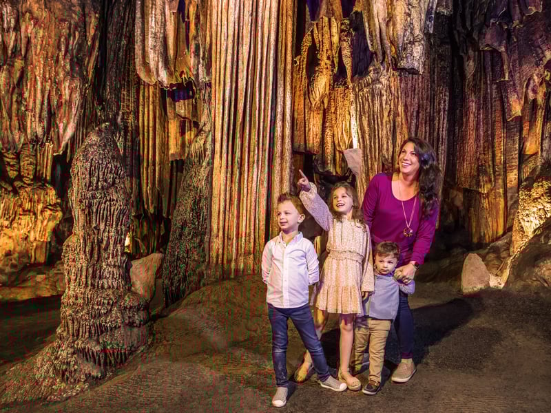 Explore Majestic Caverns on a guided one-hour tour featuring an underground laser light show. Discover a memorable underground experience as you journey through the caverns with a knowledgeable guide.