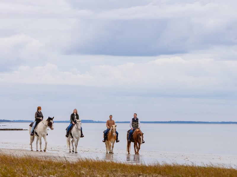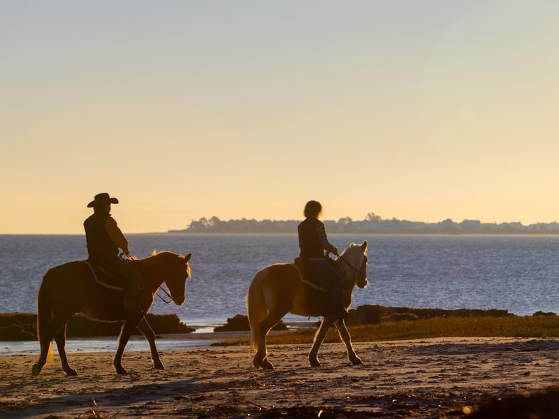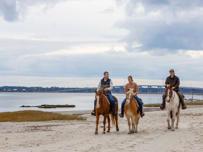 Ride gentle horses beneath live oaks draped in Spanish moss, then continue along the sand for sweeping views of St. Helena Sound. Knowledgeable guides share plantation history and capture a group photo during this relaxed 1.5-hour experience.