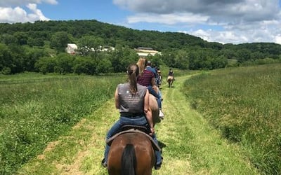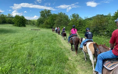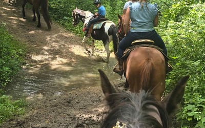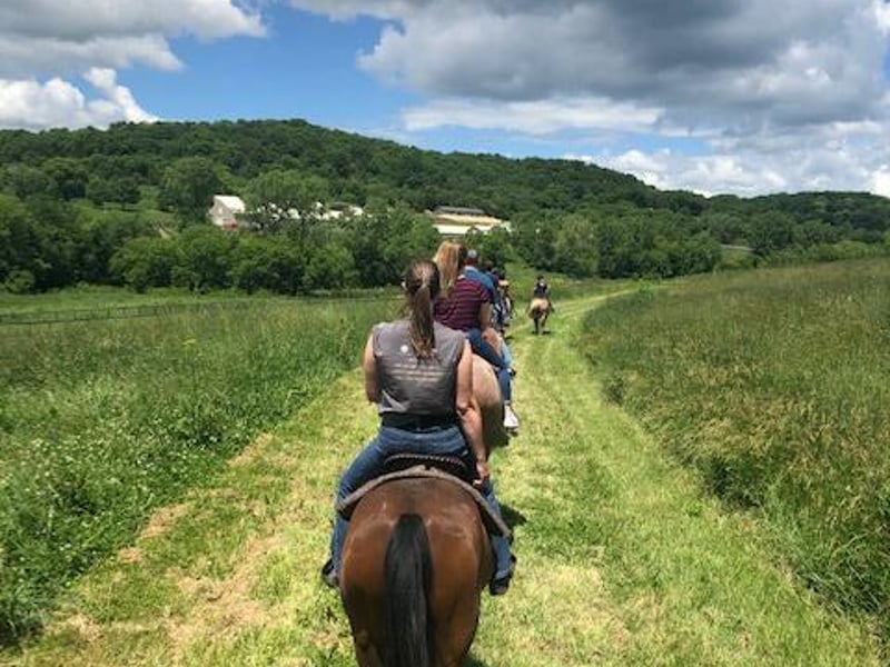 Ride calm, well-trained horses on a guided trail through The Galena Territory. This one-hour experience includes instruction plus 40–50 minutes of ride time.