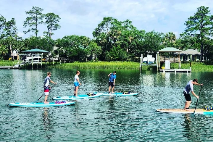 Glide across the calm waters of Skull Creek on a guided stand up paddleboard tour. Learn basic paddle techniques as you explore serene marshes and watch for local wildlife.