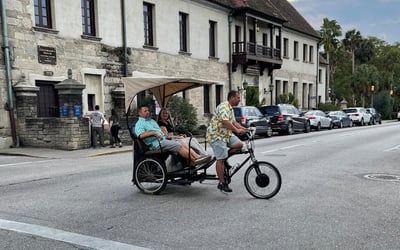 Explore downtown St. Augustine on a guided pedicab ride. Enjoy electric-assist comfort as your guide shares local highlights during a 45-minute tour.