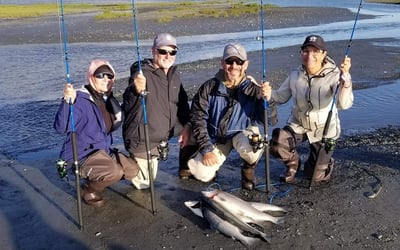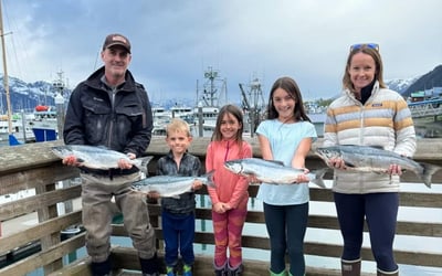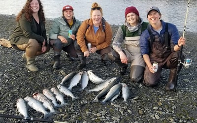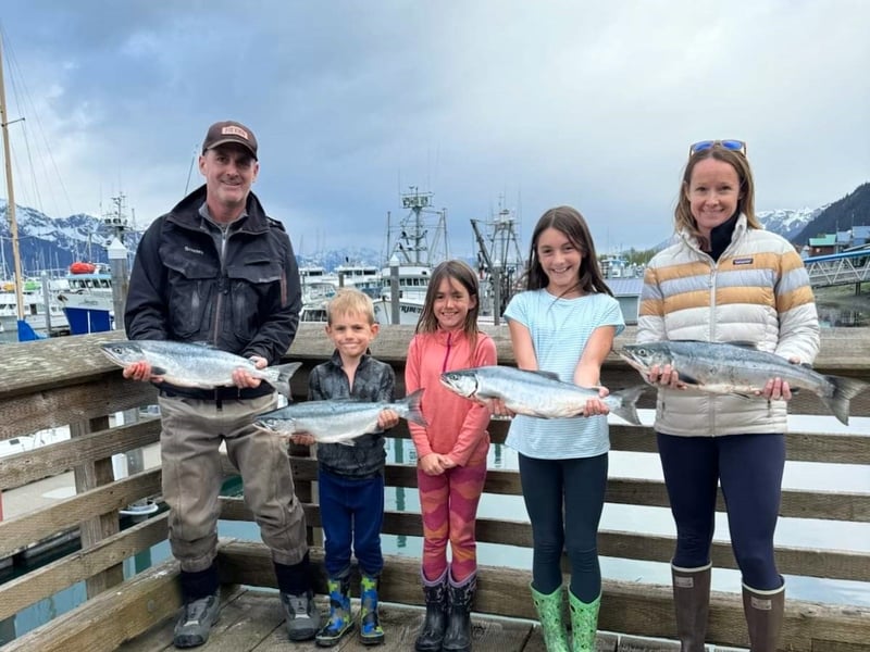 We specialize in snagging using 8–10oz treble hooks, a legal method in Seward’s salt waters, and cast lures when Silvers are in.