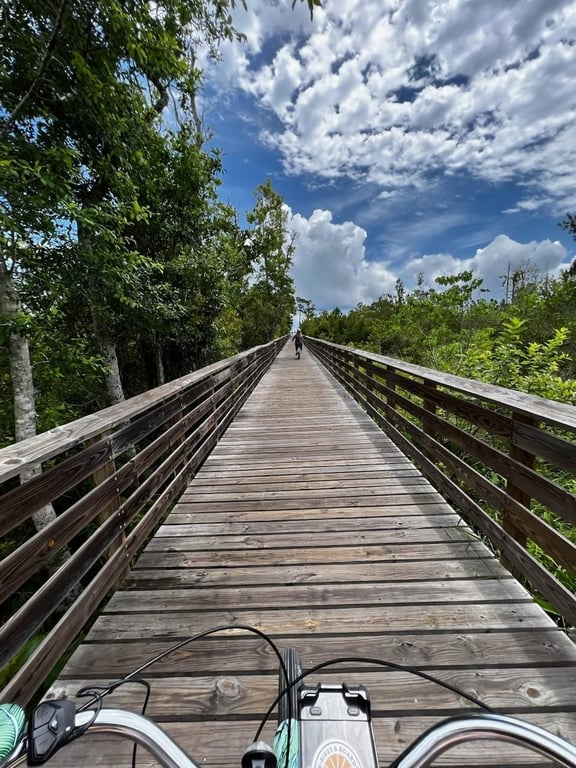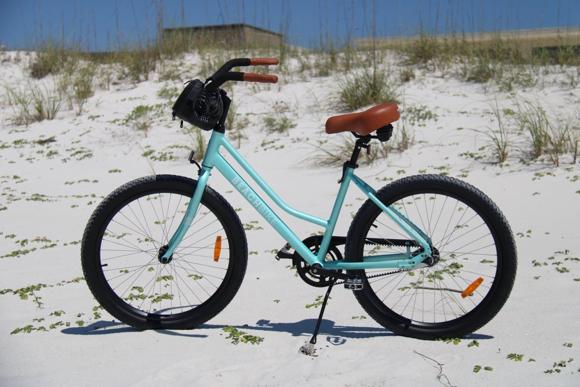 Cruise Gulf State Park trails on comfy e-bikes with helmet and lock included