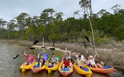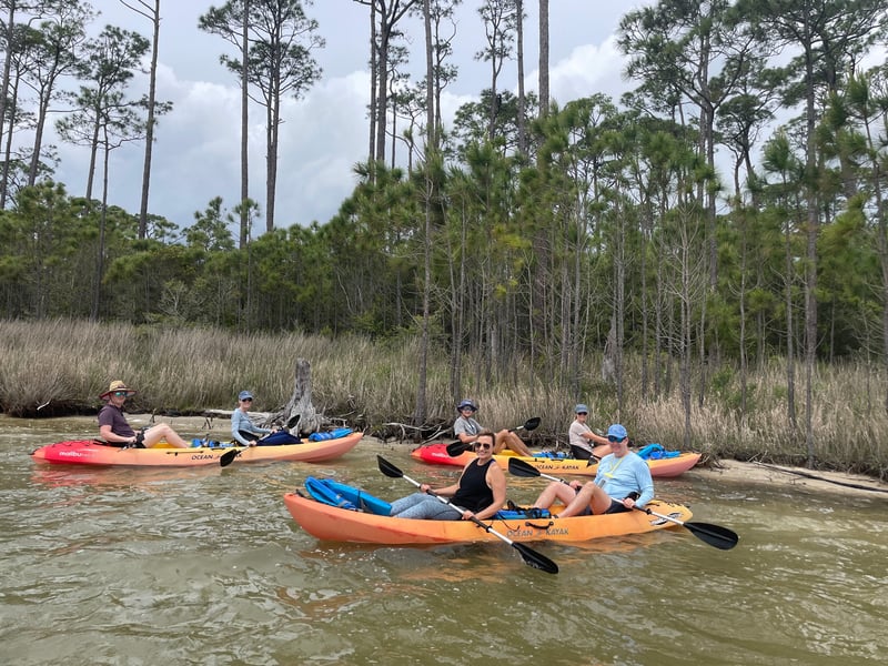 Kayak Little Lagoon in Bon Secour National Wildlife Refuge on a 1-1.5 hour tandem rental. Enjoy calm, shallow waters ideal for beginners and experienced paddlers alike.