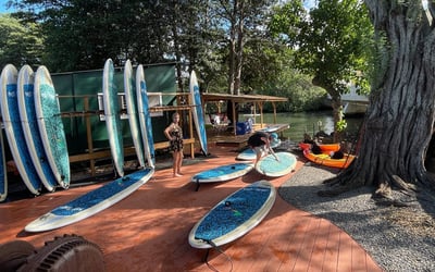 Blue Planet stands out for its genuinely helpful staff who seem to remember that vacation activities should actually be fun and stress-free. Names like Julie, Jonathan, Cree, Patrick, Mac, and Cesar pop up repeatedly, with reviewers consistently praising how these folks make everyone feel comfortable, whether you're six or seventy-two years old. The location itself is a winner for families and first-timers: you're paddling on the calm Anahulu River rather than fighting ocean waves, which means less intimidation and more time actually enjoying yourself. The easy water access is a nice touch too, so you're not lugging heavy equipment across a beach in the hot sun. What really comes through is how well this setup works for different kinds of visitors. Complete beginners get patient instruction that has them standing on paddleboards quicker than expected. Families with small kids appreciate the mellow vibe and the bridge jumping spot that keeps older children entertained. The sea turtles make regular appearances throughout the river, which seems to be a highlight for just about everyone. Equipment quality gets consistent mentions, whether people are renting surfboards, kayaks, or SUPs. If you're on the North Shore and want a laid-back water activity that won't stress out inexperienced paddlers or require you to be in peak athletic form, this spot delivers exactly what it promises.