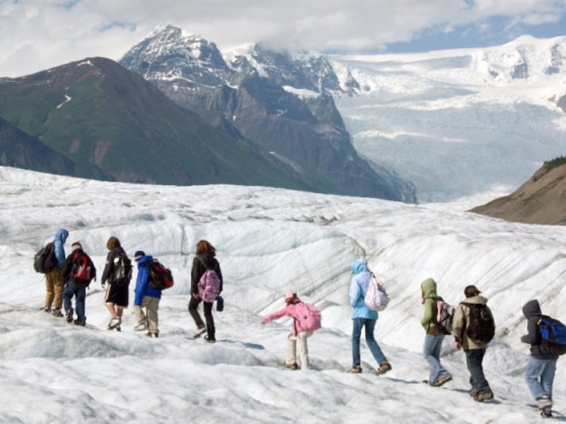 Explore an Alaskan glacier on a guided half-day hike. Traverse varied terrain with minimal experience required.
