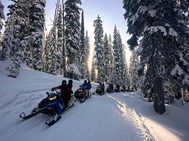 Ride through snow-capped forests and frozen waterways on a guided snowmobile tour near Whitefish. Check in at Whitefish Marine, then drive to Swift Creek Trailhead to meet your guides and explore Stillwater State Forest.