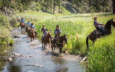 Saddle up for an intermediate half-day ride through Custer State Park. Follow experienced wranglers along scenic backcountry and enjoy lunch at Blue Bell Lodge.