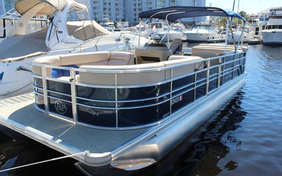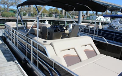 You must be 21+ to rent. Pontoons hold up to 12 and tritoons hold up to 14; be aware of weight capacities. No glass bottles are allowed onboard.