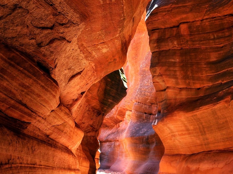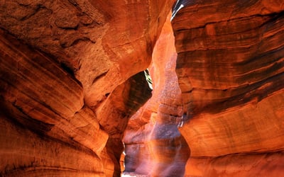 Ride a UTV through 4 Mile Canyon to Peek-A-Boo Slot Canyon, then cross sandy desert to the Red Hoodoos and the Great Chamber. Expect moderate hiking, including a short quarter-mile climb up a sandy hill into the chamber.