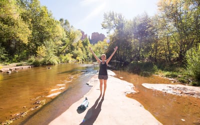 Experience a private, extended yoga hike to Cathedral Vortex with guided meditation and a restorative yoga session along Oak Creek. Unplug on serene trails, practice breathwork, and reconnect with nature with a professional yoga teacher.