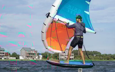 Launch directly from the shop and explore the shallow sound waters on a windsurf board or wing foil. Enjoy four hours of independent riding with quality gear.