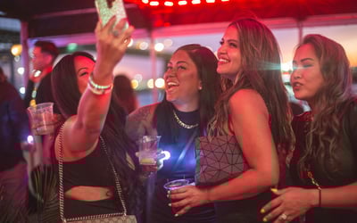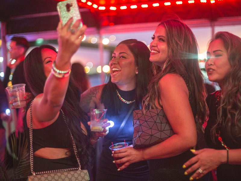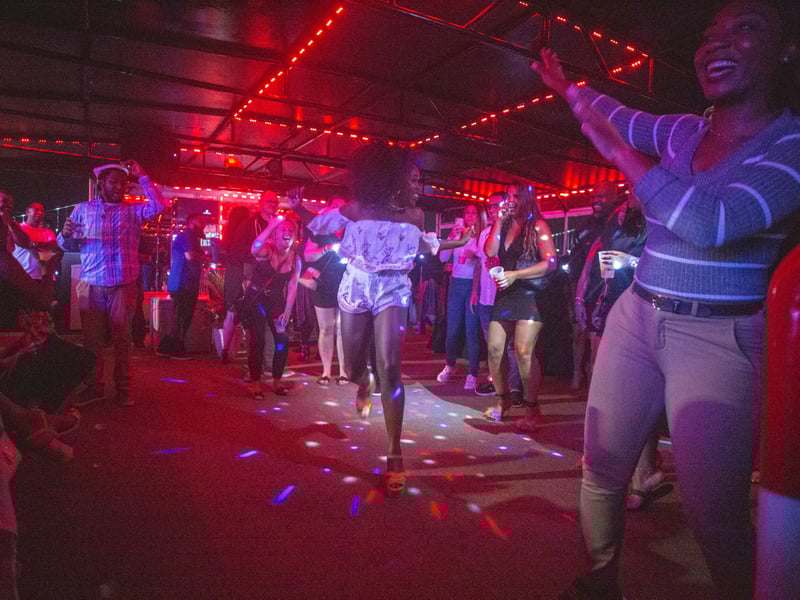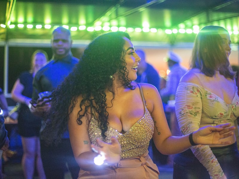 Ages 21+ only. The boat departs promptly at 8:00 pm. Seating is open, with tables available on the first, second, and third decks.