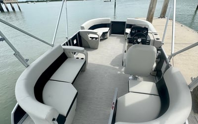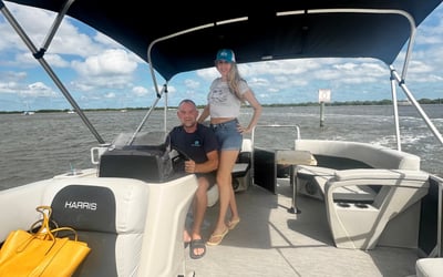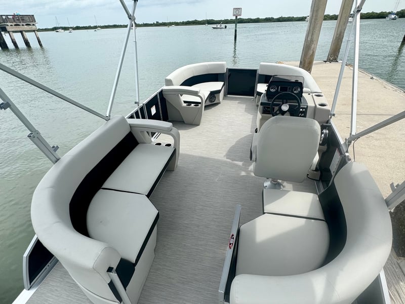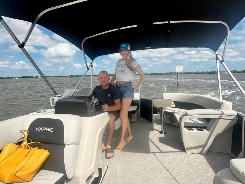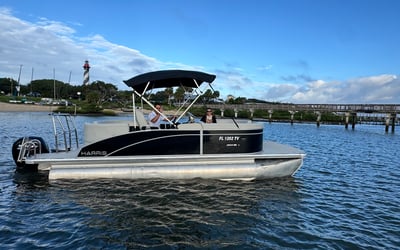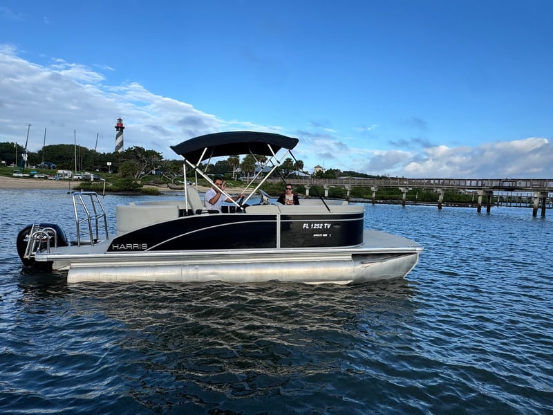 Ride a stable, zippy Harris 21BRZ tritoon on the St. Augustine intercoastal. Enjoy roomy seating, modern features, and power from a Mercury 150hp.