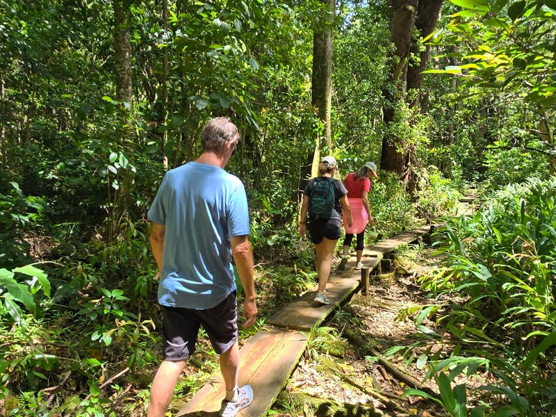 Above average fitness level required for this 2.5 mile round-trip. Wear sturdy shoes with good traction on dirt and rainforest mud. All ages welcome. When booking, include where you are staying in the notes section.
