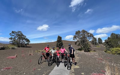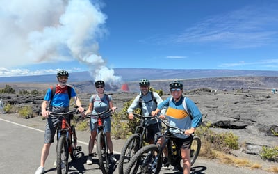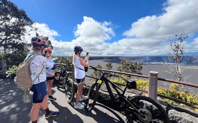 Explore Hawaii Volcanoes National Park on a guided e-bike ride through lush rainforests, ancient lava fields, and the crater rim of Kilauea. Learn about geology, culture, and wildlife while covering nearly 20 miles with pedal-assist comfort.