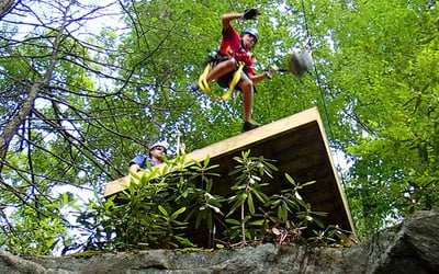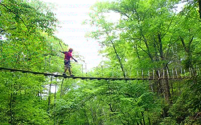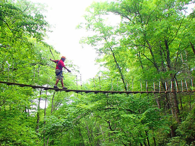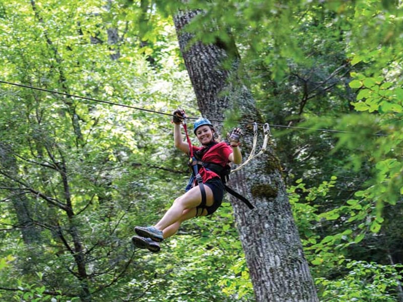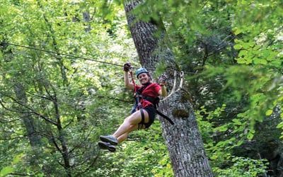 Soar above forest canopies on ten ziplines, an ATV ride, and a 50-ft swinging bridge