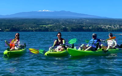 Paddle calm Hilo Bay on a guided kayak tour to Coconut Island and Queen Lilibbuokalani Gardens. Hear stories of Hilos past and enjoy views of Mauna Kea and Mauna Loa as you explore beginner-friendly waters.