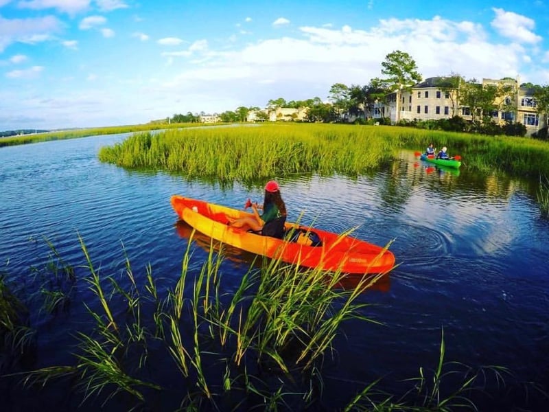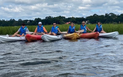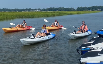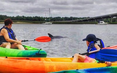 Glide across Hilton Head's Broad Creek on a guided eco-kayak tour that blends easy paddling with rich Lowcountry stories. Discover marshes teeming with wildlife while your guide shares the creek's history.