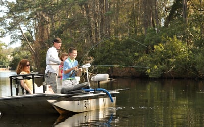 Arrive 15 minutes before your scheduled time. The skiff fits up to three adult anglers or a family of four, with children ages 12 and under.