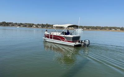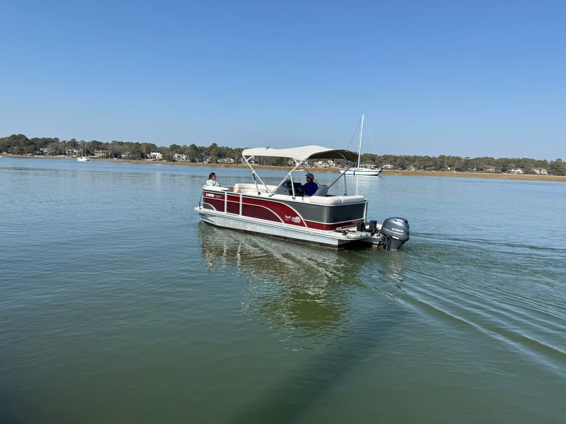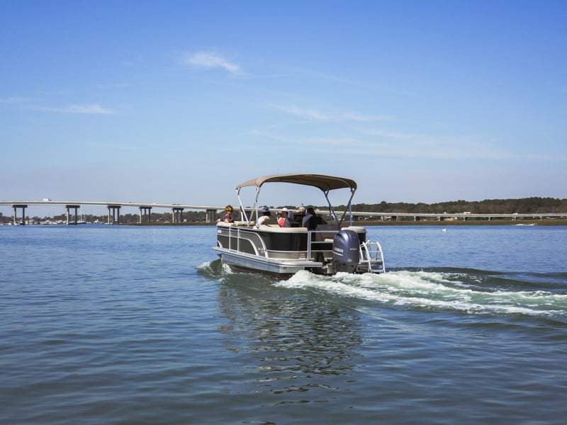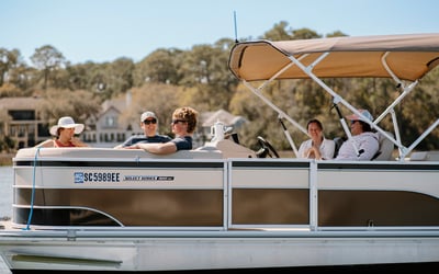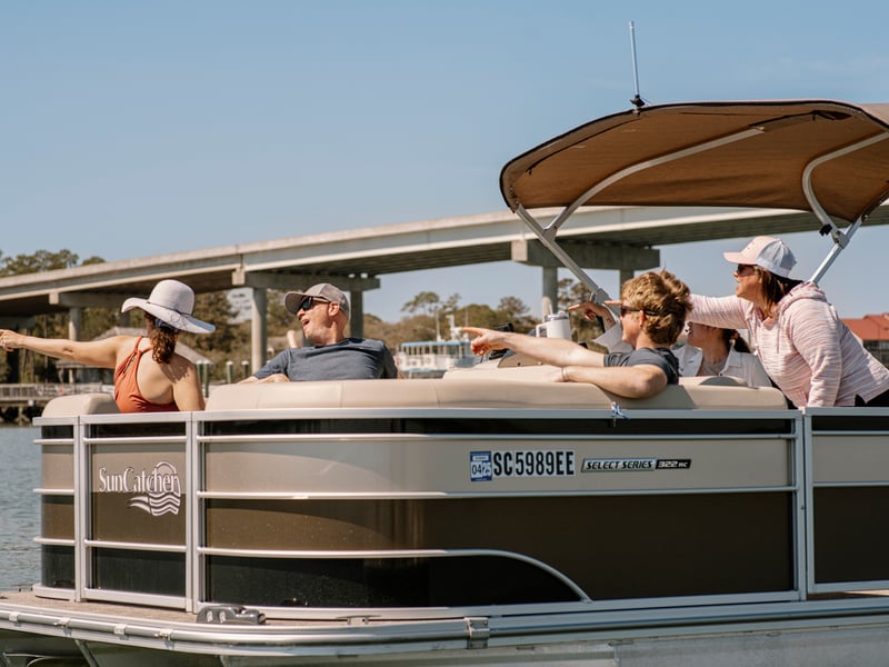 Pilot a spacious pontoon to explore Broad Creek and Calibogue Sound at your own pace